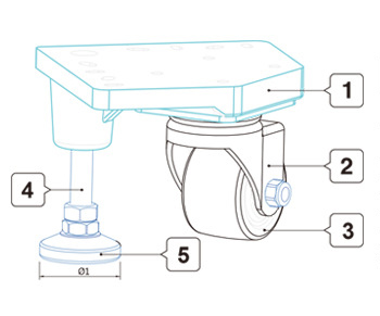 4. The function of casters cannot be changed and is not affected by the installation device.